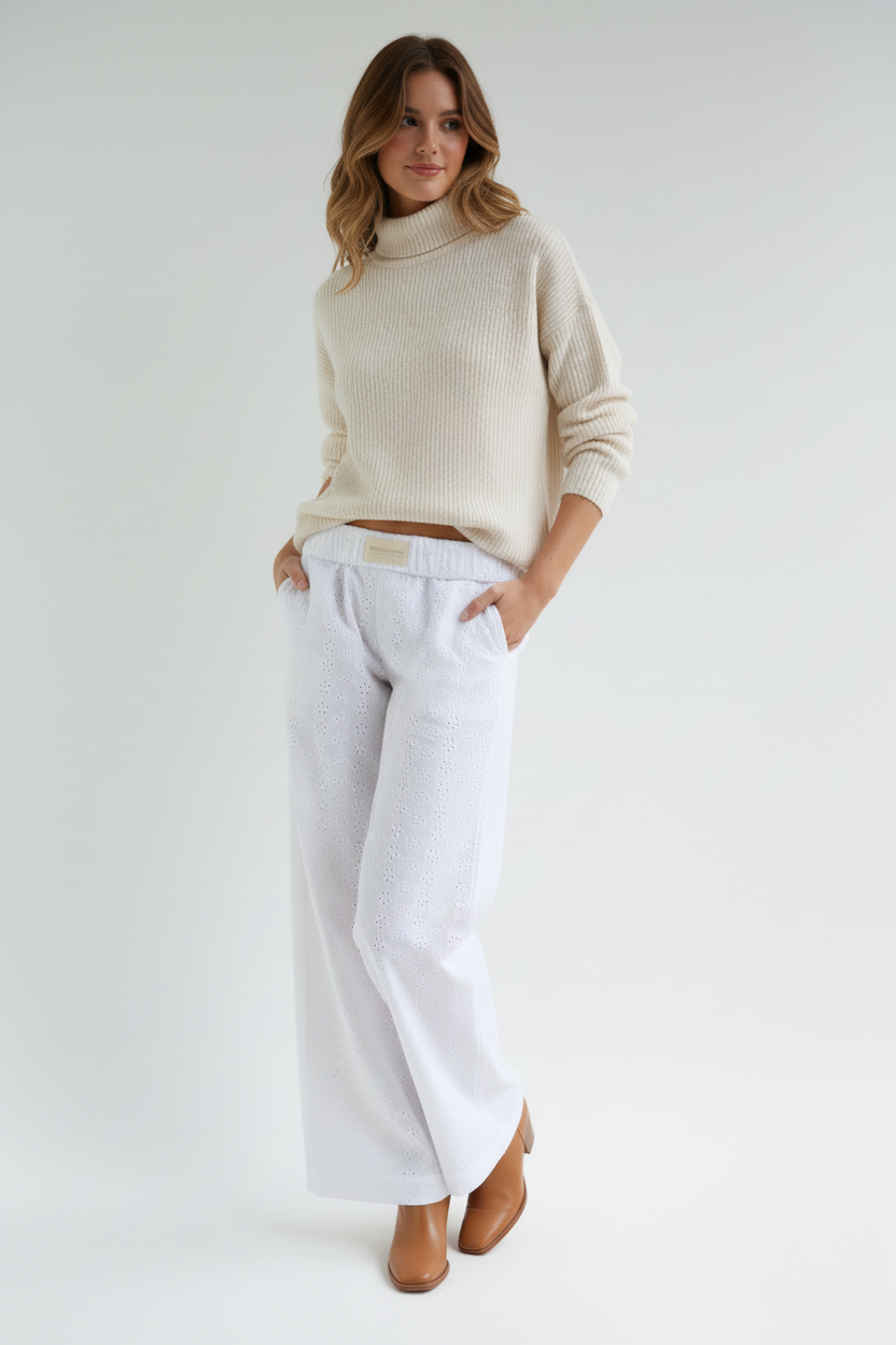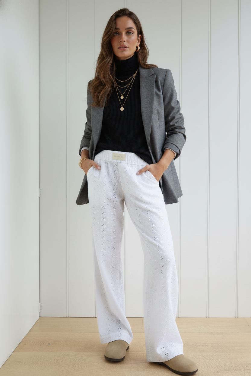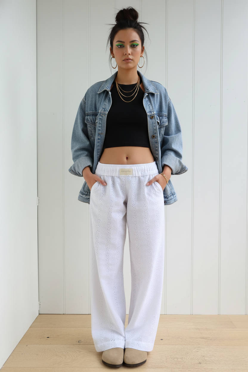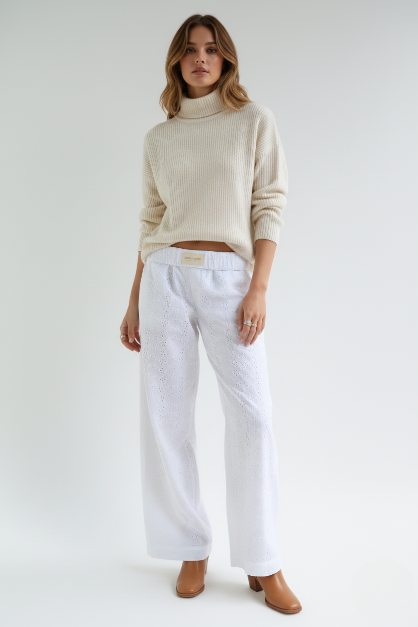 Doğallığın hafifliğini, rafine bir şıklıkla birleştiren bu beyaz organik pamuk pantolon✨
