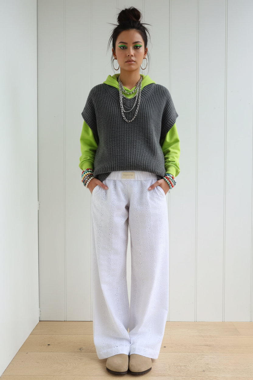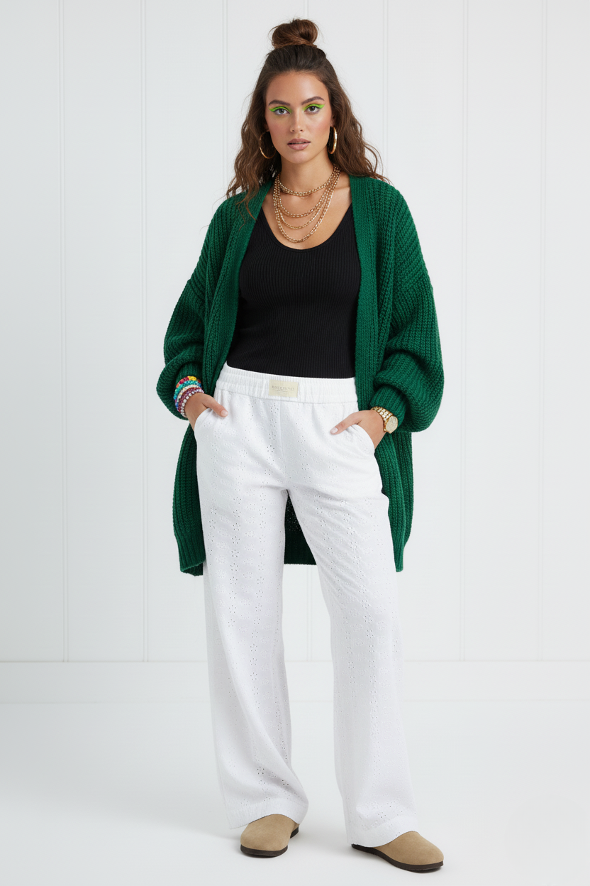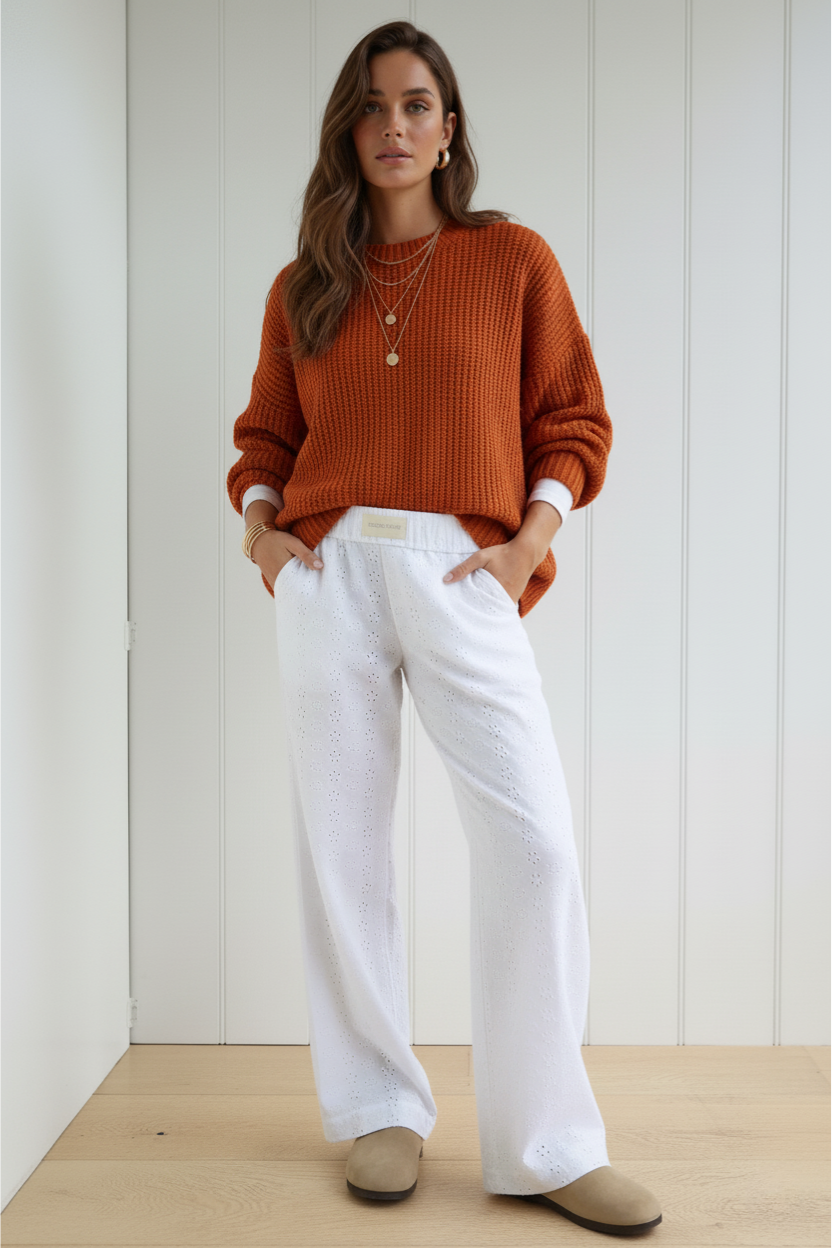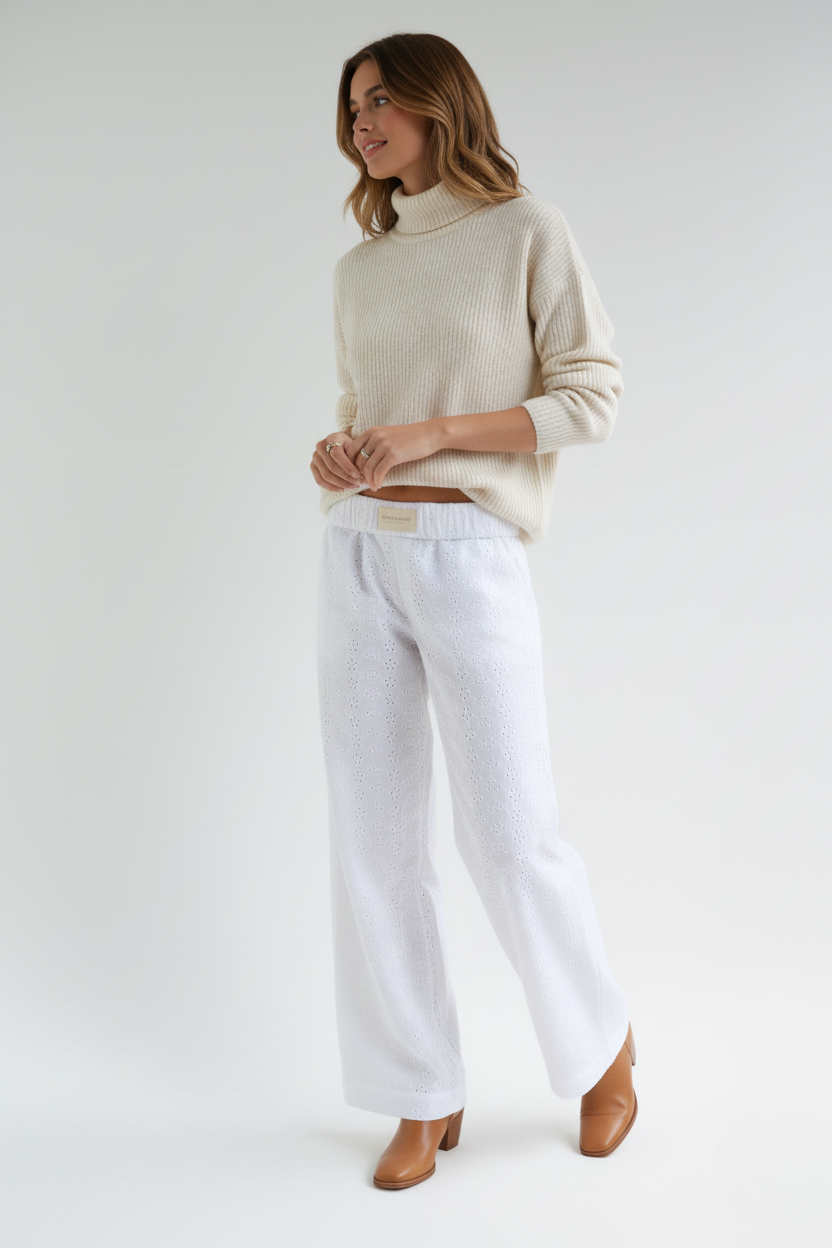 Doğallığın hafifliğini, rafine bir şıklıkla birleştiren bu beyaz organik pamuk pantolon✨